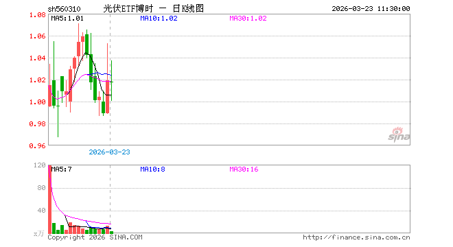 3月23日,截止午间收盘,光伏ETF博时(560310)跌0.10%,报1.018元,成交额299.16万元。光伏ETF博时(560310)重仓股方面,特变电工截止午盘涨0.71%,隆基绿能涨0.90%,TCL科技跌3.61%,阳光电源跌0.63%,通威股份跌0.05%,迈为股份涨4.15%,罗博特科跌4.99%,捷佳伟创涨0.70%,德业股份跌2.46%,正泰电器涨0.80%。