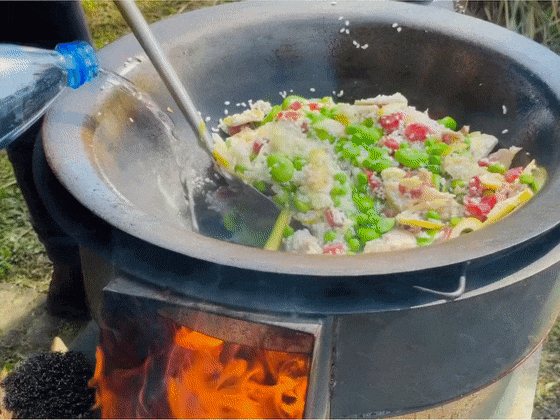 把春笋、咸肉、青豆的鲜香味全焖进米饭里,