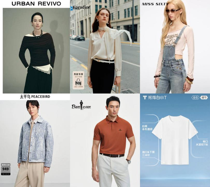 AI换装互动的同款春装中,UR春季新款一字领褶皱T恤,面料含98%绵羊毛,适合春日贴身穿着;珂莱蒂尔法式雪纺衬衫,采用轻盈雪纺面料,日常通勤或约会场景都适配;MISS SIXTY牛仔背带裤,高弹力牛仔布穿着不紧绷;太平鸟男装牛仔夹克,选用经典水洗牛仔面料,能为春日叠穿增添随性硬朗气质;比音勒芬防晒短袖POLO衫,轻松应对商务场景和日常通勤;拇指白小T的男士T恤,功能性面料防晒不沾身,污渍更易清洁。