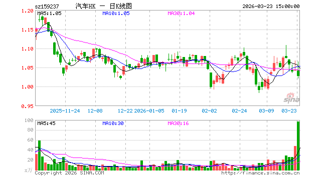 3月23日港股汽车ETF工银(159237)份额增加1000.00万份,最新份额4033.42万份,最新规模4177.42万元