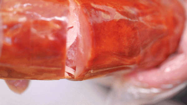 比起市面上用来路不明的碎肉制成的香肠,这根老火腿的用料可谓相当实诚。