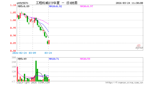 工程机械ETF华夏(515970)业绩比较基准为中证工程机械主题指数收益率,管理人为华夏基金管理有限公司,基金经理为王欣薇,成立(2026-02-04)以来回报为-15.46%,近一个月回报为-15.98%。