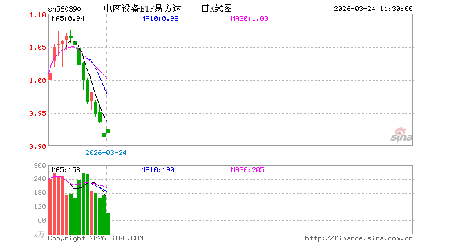 电网设备ETF易方达(560390)涨0.66%,半日成交额8483.59万元