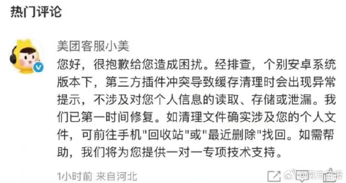 对此,美团官方客服回应称:“该问题主要是安卓系统在极少数情况下,App自动缓存清理时遇到第三方SDK冲突导致异常。问题发生后至今,累计有180多位用户进线客服咨询,预计潜在波及用户范围约在数百人。我们在发现该问题后已第一时间进行紧急修复。”