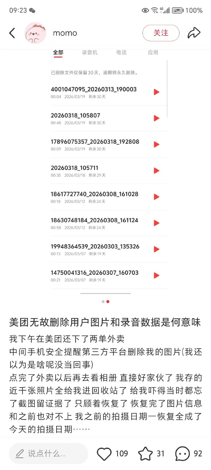 近日,多位用户在社交媒体发帖反映,美团App在未操作时自动删除自己手机相册中的照片、视频甚至音频文件,导致部分用户数年珍贵数据永久丢失且无法恢复,造成损失,同时也引发用户对App权限滥用的广泛担忧。
