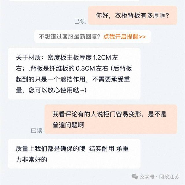 问政江苏|网购衣柜板材宣称0.3厘米厚,实际“缩水”一半 商家:尺子的刻度不一样