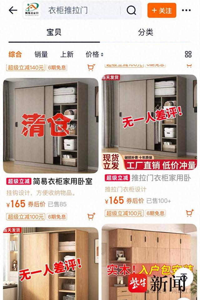 记者浏览该店铺时注意到,组装柜子的价格在165元-580多元不等。商家打出“无一差评”的宣传口号,并宣称“整柜加厚E1级健康环保板材,防潮防霉不变形,拒绝异味”“质保10年”。然而,记者打开评论区浏览时看到不少差评。