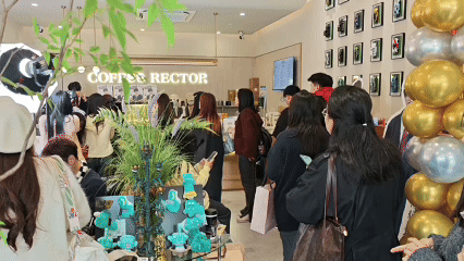 一家本土咖啡店门前排起长龙