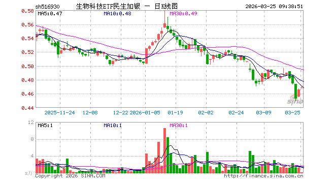 3月25日,生物科技ETF民生加银(516930)开盘涨0.43%,报0.468元。生物科技ETF民生加银(516930)重仓股方面,药明康德开盘涨1.01%,迈瑞医疗涨0.98%,恒瑞医药涨0.67%,上海莱士涨0.69%,复星医药涨2.76%,百济神州涨0.40%,长春高新涨0.72%,康龙化成涨0.39%,泰格医药涨0.41%,甘李药业涨0.77%。
