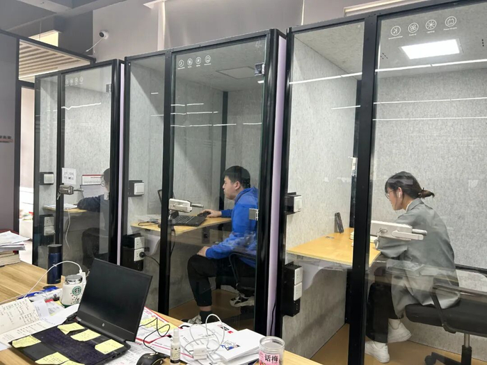峰学蔚来的员工随时可以在格子间里开直播。图源冯颖星