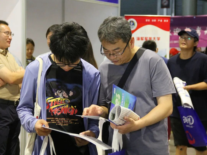 今年,在南京国展中心举行的首场高校招生志愿填报咨询会吸引了考生和家长。图源视觉中国