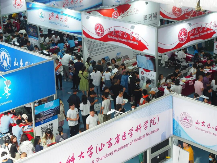 2023年山东高考招生咨询会,500多所高校设摊咨询。图源视觉中国