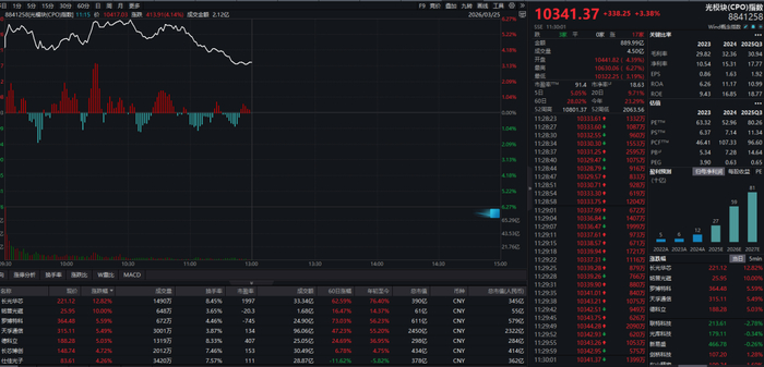 板块热点方面,CPO概念大涨,成为上午A股市场主要热点之一。