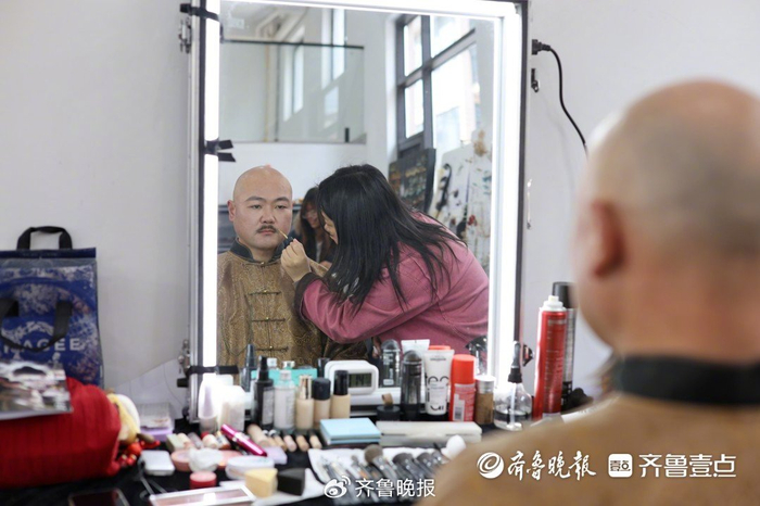 化妆师为新角色定妆特意加深法令纹