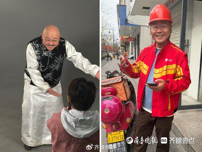 记者骑着电动车紧随其后,他穿梭得游刃有余,递过餐盒时那句“您的外卖到了”说得又稳又亲切,和几个小时前定妆时皮笑肉不笑的反派角色判若两人。