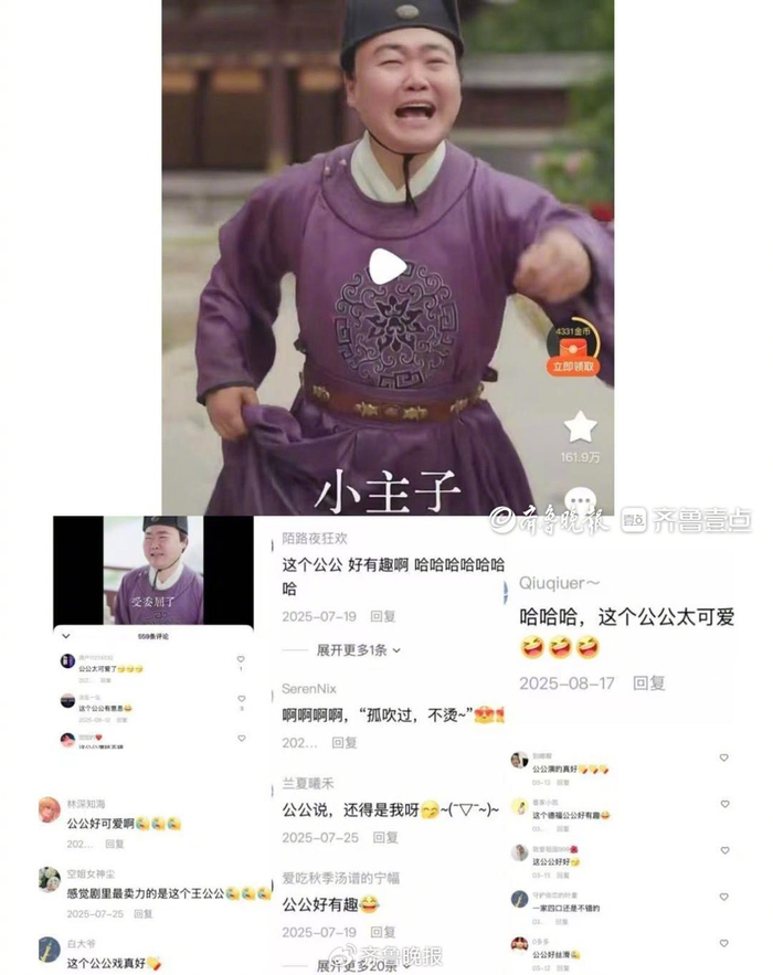 他翻出一段视频。戏里,他望着皇上背影,即兴轻叹:“自古多情空余恨,此恨绵绵无绝期。”那部剧热度值冲到4300万,弹幕刷满“这个公公好可爱”。“AI能读出这句诗,但算不出我当时眼里的‘心疼又无奈’。”
