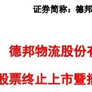 3月25日,德邦股份(603056)发布公告称,上交所同意公司主动撤回股票在上交所的交易,并决定对公司股票予以终止上市,公司股票将于3月31日终止上市暨摘牌。