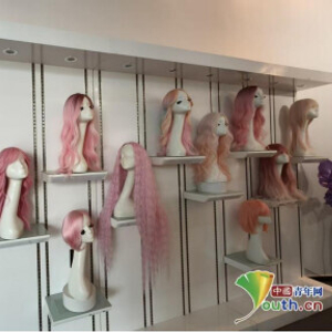 展厅内假发陈列。中国青年网见习记者王煜鑫 摄