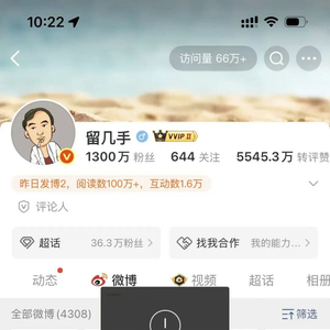3月26日,千万粉丝大V“留几手”微博账号被禁止关注。