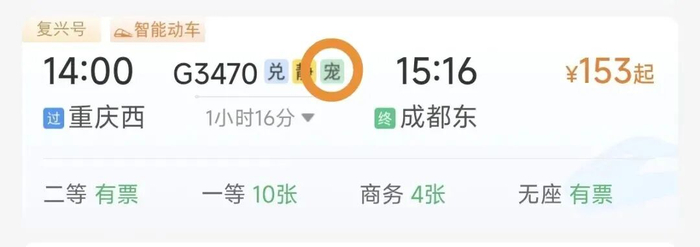 标注“宠”字:代表可以办理“宠物托运”服务。旅客购买该趟列车的火车票后,在铁路12306App进入“宠物托运”模块,按步骤进行操作。