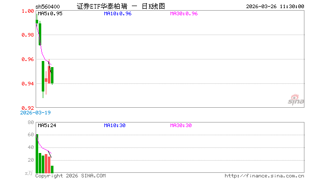 3月26日,截止午间收盘,证券ETF华泰柏瑞(560400)跌1.47%,报0.940元,成交额1060.31万元。证券ETF华泰柏瑞(560400)重仓股方面,中信证券截止午盘跌1.50%,东方财富跌2.71%。