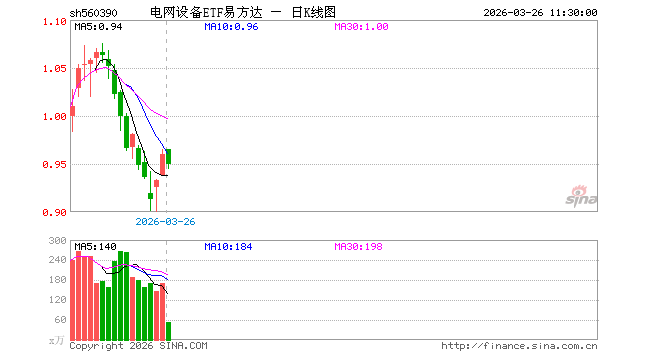 电网设备ETF易方达(560390)跌1.15%,半日成交额5174.11万元