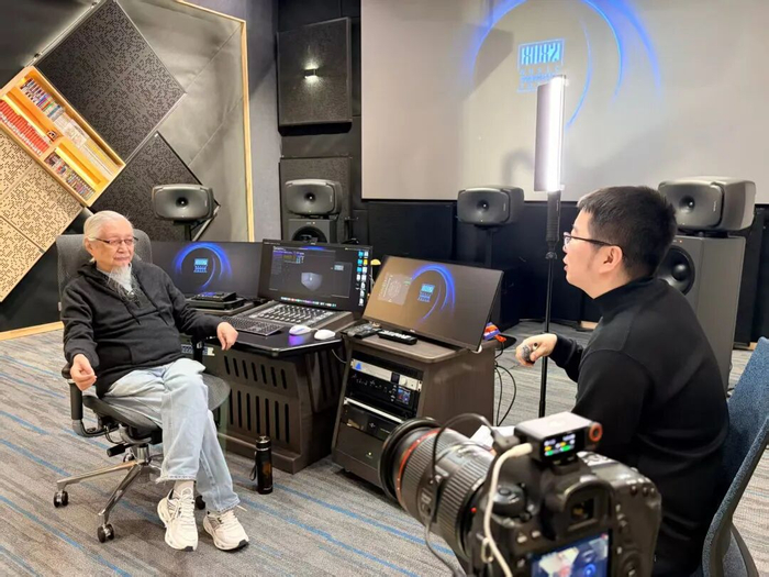 专访在8082Audio完成,这间工作室里,年轻一代的音乐工作者们曾为《黑神话:悟空》创作游戏配乐,那是天命人重走西游的故事,后来团队又与胡伟立携手,完成了《镖人:风起大漠》的配乐创作,踏上从西域回望长安的路途,接下来,他们还将在北京、上海、深圳开启“胡伟立重现经典音乐会”。采访对话既是在怀旧——听这位90岁的音乐老师讲述与黄霑、徐克、周星驰合作的幕后故事,也是在迎新——AI浪潮以及更广阔的文化交流视野里,如何把握创作中的东方意蕴。