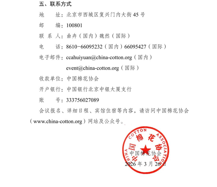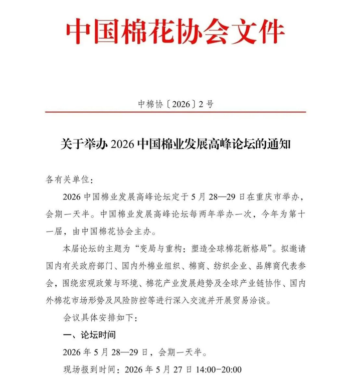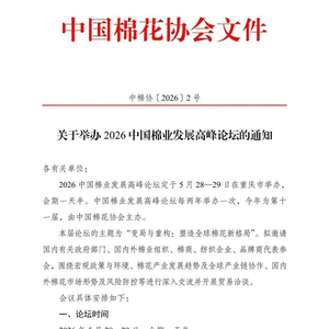关于举办2026中国棉业发展高峰论坛的通知
