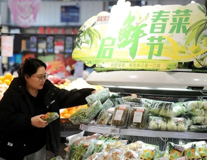 北京一家商超的负责人介绍,从2月底到3月,都是春菜的上新季,春菜商品多达四五十款。今年春菜热门品种价格普降:香椿同比降幅超30%,板蓝根青菜同比降幅近40%。价格亲民拉动了销量,今年春菜季销量同比上涨70%。