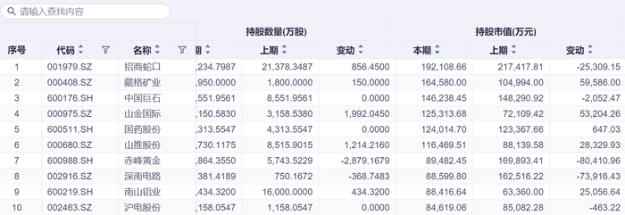 根据持股量统计,招商蛇口、南山铝业、海油发展、南钢股份的社保基金持股量均超过1亿股,分别为2.22亿股、1.64亿股、1.22亿股和1.08亿股;2025年四季度末持股市值超10亿元的个股有6只,包括招商蛇口、藏格矿业、中国巨石等。