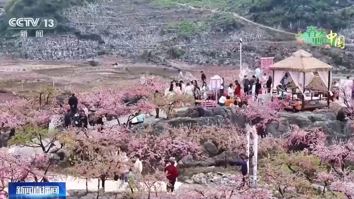 春日暖阳下,当涂县护河镇桃花村迎来赏花旺季。万亩花海竞相绽放,粉艳桃花、洁白梨花、七彩油菜花交织错落,与白墙黛瓦的徽派民居相映成趣,绘就一幅诗意盎然的江南田园春景。漫步花海间,一处由乡村老屋改造的咖啡营地成为今年的热门打卡地。在这里,清甜花香与醇厚咖啡香交融碰撞,文艺格调与田园风光相融,游客可在赏花之余,沉浸式享受乡村慢生活。 除了特色咖啡营地,桃花村还新增萌宠互动、露营烧烤等多元化游玩项目,既拉长了停留时长,也大幅提升了游客的参与感。花海引来客流,业态留住人气。村里的农家菜馆、特色民宿、土特产品持续走俏,越来越多的村民在家门口吃上了稳定的“旅游饭”。 护河镇桃花村驻村第一书记 陈昆:今年我们围绕把桃花流量变成乡村留量,通过民宿、咖啡文创、亲子体验这些实实在在的项目留住游客,同时带动桃花酿酒、土特产等产业发展,拉长消费链条。梯田美景+农家生活沉浸式赏花引客来陕西省安康市汉阴县漩涡镇的凤堰梯田,作为世界灌溉工程遗产,承载着千年农耕文明的印记。眼下,这里的万亩油菜花迎来盛花期,游客沉浸式赏花打卡,体验农家生活,带动当地“赏花经济”持续升温。走进凤堰梯田,层层叠叠的梯田与金黄花海相互映衬,构成一幅动态十足的春日美景。美景引客来,消费热起来。随着赏花客流激增,当地农家乐与民宿迎来了接待高峰。梯田周边的农家乐里,腊肉、土鸡、干菜等极具陕南特色的农家菜,都备受游客喜爱。 在花海的周边住上一天,也是独特的体验,随着油菜花盛开,花海周边的民宿生意火爆。 今年一季度截至目前,漩涡镇已接待游客15万人次,同比增长17%。以“花经济”为引擎,当地农文旅融合进一步深化,为乡村全面振兴注入了强劲动力。石山上桃花开汗水浇出幸福果春日时节,湖南永州市江永县的桃花迎来盛放期。与别处不同,这里的桃花开在了石缝中,娇美的花朵顽强绽放,构成一幅别样的春日画卷。走进永州市江永县兰溪瑶族乡香花井村,放眼望去,喀斯特石山被粉色的桃花层层包裹。游客们漫步在步道间,感受着这份独特的春日美景。 这片石头山上的粉色奇迹,源于当地向石山要绿的执着与坚守。香花井村曾是“八分石山两分地”的偏远山村,石多土少、土地贫瘠。 近年来,当地党员群众撬石凿岩、填土栽苗,在石头缝里种下耐旱喜光的桃树。种植规模从最初的2000多亩,发展到如今的一万余亩,涵盖黄桃、油桃等20多个品种,并同步打造出“春天赏花、夏秋采果”的全新业态,村民们纷纷吃上了旅游饭。 据统计,三月中旬以来,香花井村日均接待游客超2000人次,高峰期单日客流破万。目前,全村有260户农户参与桃树种植,村里建有农家乐9家、农特产品销售点8个,桃花季日均销售额超5000元。每一朵绽放在石缝间的桃花,都是大伙儿用汗水浇灌出的希望。花海铺春色盛景聚游人春日花开正好,在江苏苏州,当地依托江南园林与山野景致,打造多维主题花海,吸引众多游客。微风拂过,花香四溢,在苏州上方山国家森林公园,郁金香、绣球、海棠等花卉竞相绽放,放眼望去,缤纷的花海层层叠叠、铺展如画,市民游客到这里露营、野餐,在鸟语花香中感受春日美好。 除了缤纷的花海,这里还有特色花园艺术展区,庭院花草如何打造,家中阳台如何用鲜花装扮,这里都有展示。 高颜值的景致叠加新业态加持,有效带动客流与消费双增长。这段时间,景区日均吸引超过万人次前来打卡,同比增长15%左右。