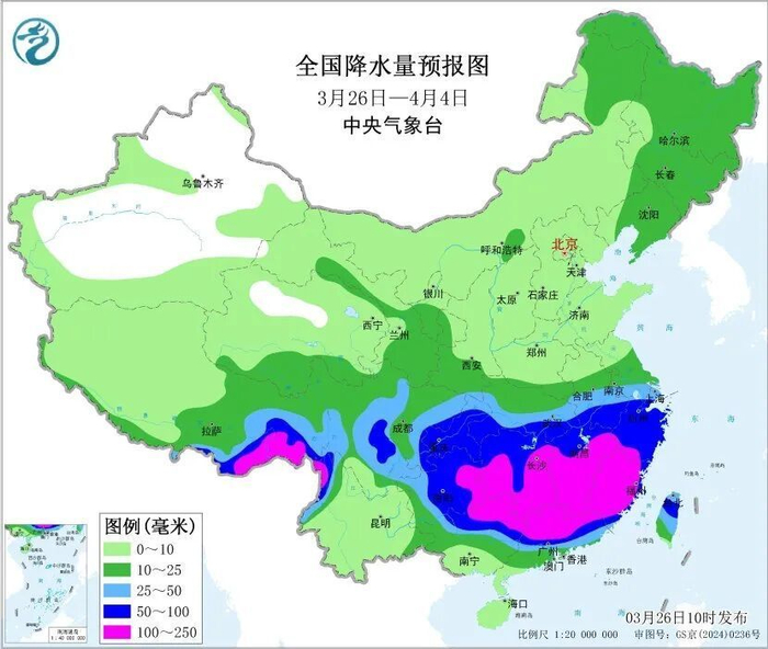 4月2日至4日,江南、华南北部以及贵州、四川盆地东部等地还有中到大雨,局部暴雨。