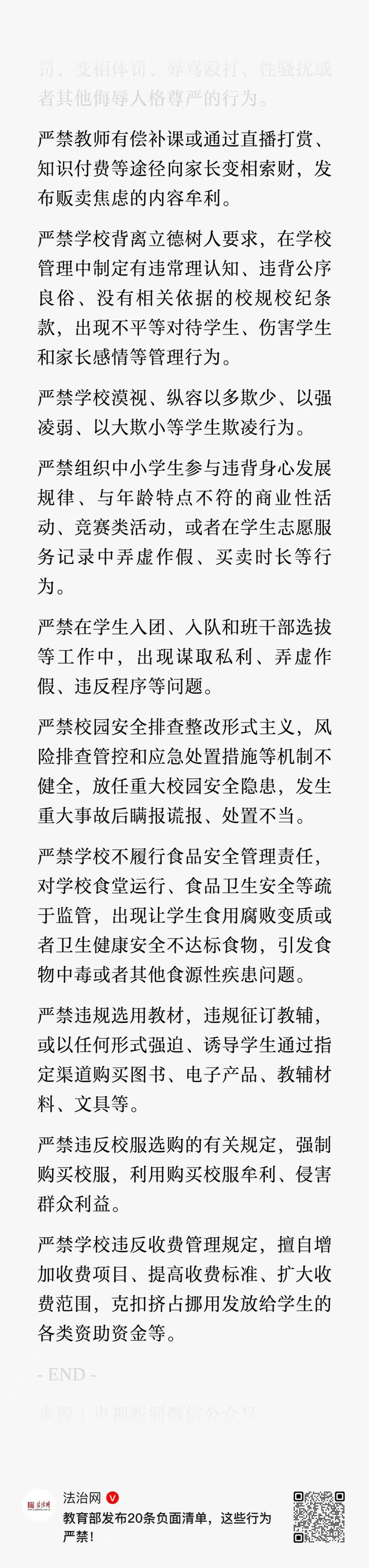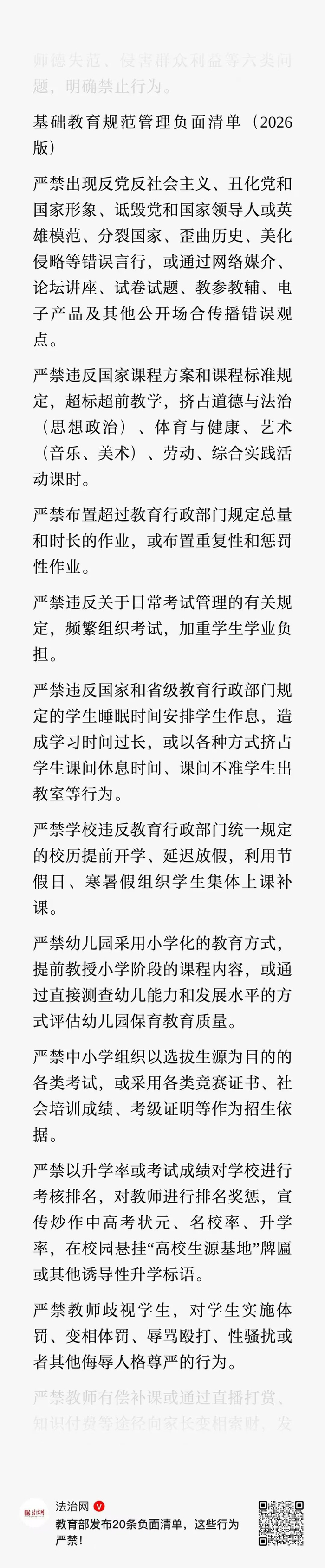 教育部发布新20条:严禁超前教学,严禁布置重复性和惩罚性作业,严禁教师有偿补课,严禁侮辱体罚学生……
