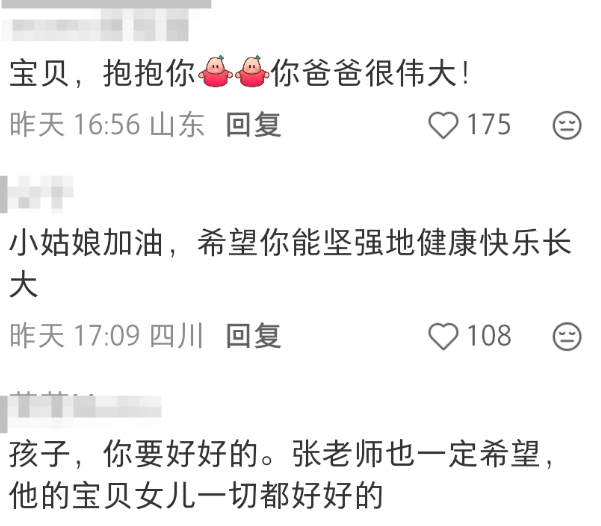 不少网友在评论区回复,希望她坚强起来,能健康快乐地成长。