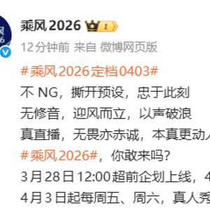 《乘风2026》定档4月3日开播,嘉宾阵容公开:王濛、萧蔷、范玮琪、李小冉等33人登台挑战,公演将采用“直播”模式
