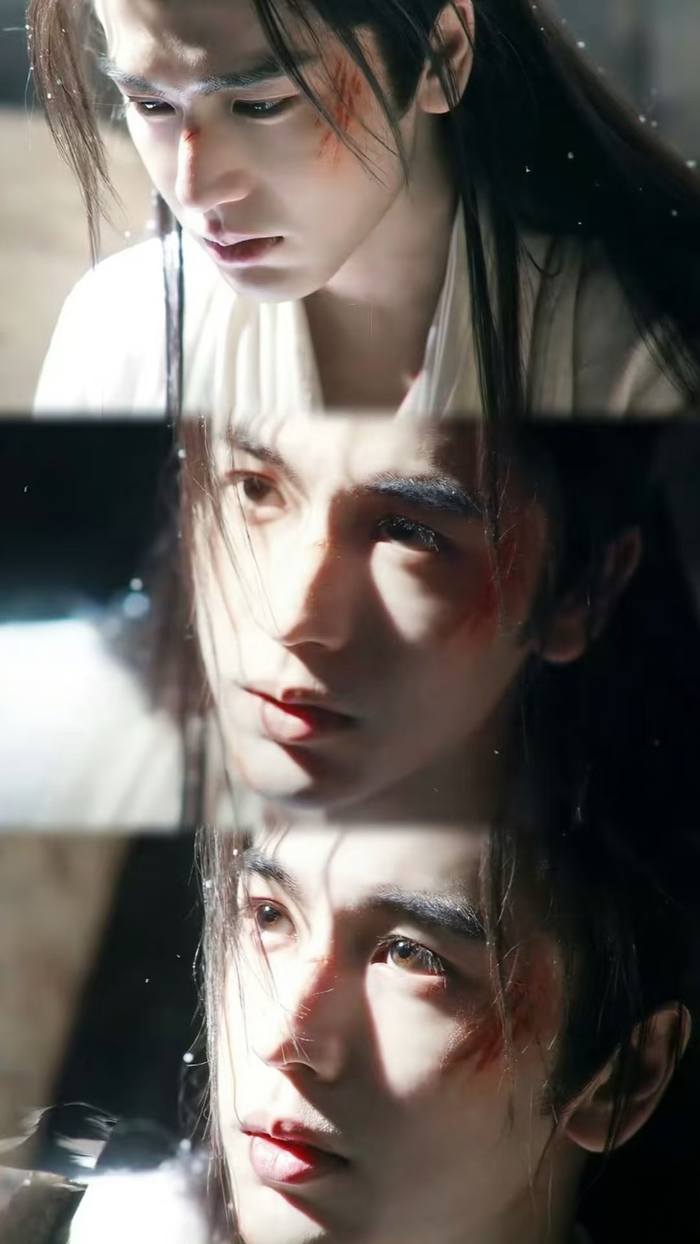 但是,这么一位武力值拉满的战神将军,即便刚经历一番厮杀,造型却仍从头到尾都很妆容精致,一尘不染。而女主从雪地中将他救回家,重伤的谢征我见犹怜,红色伤口宛如“战损妆”,即使藏在猪圈中他的周身都笼罩着一层柔光滤镜。