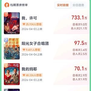 清明档新片预售票房破1000万,影片《我,许可》《阳光女子合唱团》《我的妈耶》《天才游戏》《超级马力欧银河大电影》暂列前五