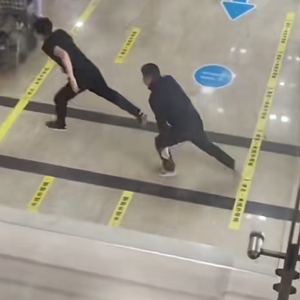 随后,男子快步向前跑,朝墙撞去。