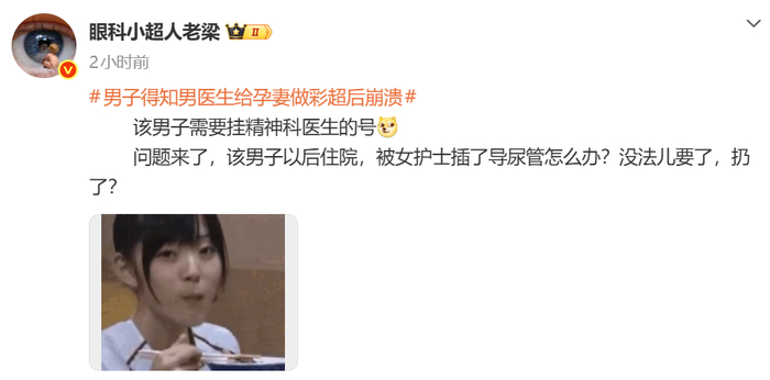 眼科小超人老梁说该男子需要去挂精神医生的号,如果该男子以后住院,被女护士插导尿管了怎么办?