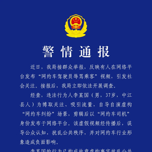 “网约车驾驶员辱骂乘客”?成都郫都警方通报:一男子自导自演虚构“网约车纠纷”场景被处罚 环球网 环球网官方账号 03.2721:53 关注 本文转自【成都郫都公安】;2026年3月27日,成都市公安局郫都区分局发布一则警情通报: