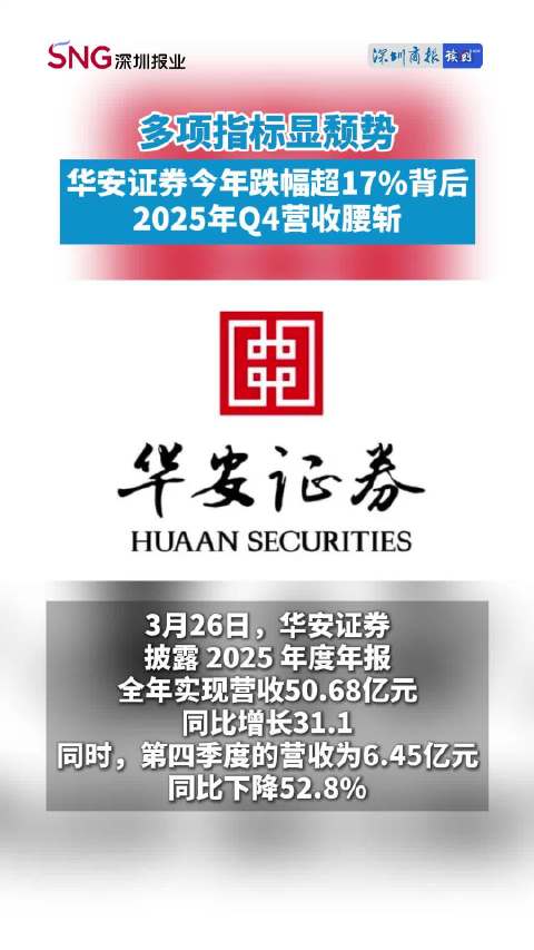 视频|华安证券今年跌幅超17%背后:2025年Q4营收腰斩,多项指标显颓势