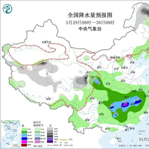 据预报,3月29日至31日,四川盆地东部、江汉南部、江淮南部、江南、华南北部及贵州东部等地有较强降雨,重庆、贵州东部、湖南北部和西南部、江西中部、广西北部、广东北部、福建中西部等地的部分地区有大雨或暴雨,湖南西南部、江西中部等局地有大暴雨。