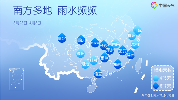 明天开始的这轮过程雨势更强!3月29日-31日,湖南北部和西南部、江西中部、广西北部等地的部分地区有大雨或暴雨,江西中部等局地大暴雨!