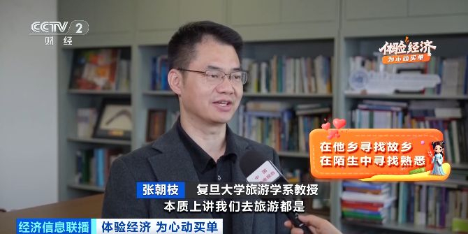 复旦大学旅游学系教授 张朝枝:本质上讲我们去旅游都是在他乡寻找故乡,在陌生当中寻找熟悉,影视带动旅游,首先是要通过好的故事调动你的情感、情绪,然后是要在旅游地形成标识符号,带动你的行动、消费氛围。要让游客在这地方吃住行娱乐,整个场景是便利的,提供情绪价值的各种布置都得要配套完善。