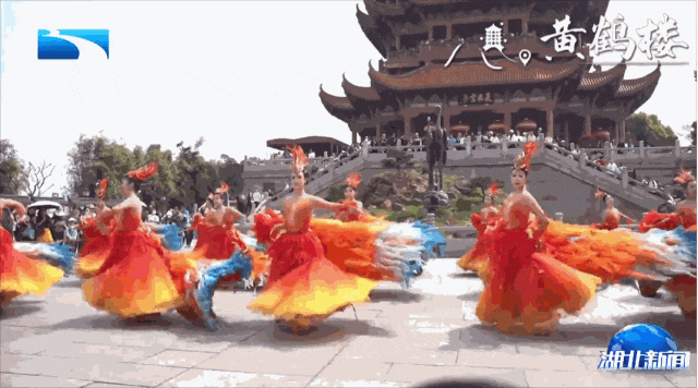 跟着人流往里走,到了西广场,央视蛇年春晚的同款舞蹈《凤舞九天》正在上演。舞蹈演员们身着华服,在樱花树下翩翩起舞,将武汉的“凤凰精神”演绎得淋漓尽致。