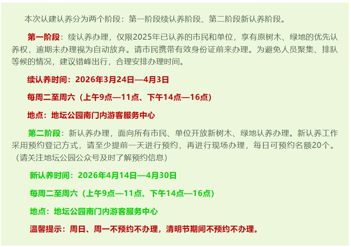 今年是地坛公园认建认养活动第19年,具体安排如下: