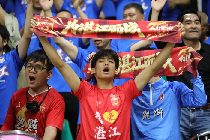 观众席上,双方球迷助威团擂鼓呐喊,激情助威。湛江球迷的加油声一浪高过一浪,为客场作战的家乡球队注入满满能量。
