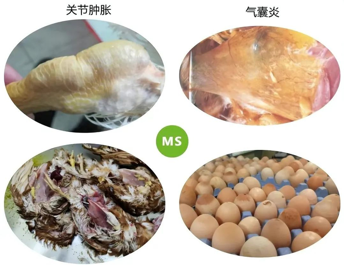天津众联监测近几年在很多无产蛋高峰鸡群的输卵管中检测到MS核酸呈阳性,MS ELISA抗体水平很高(均值大于12000),鸡群早期几乎没有或者表现很轻微的关节病变,关节组织检测不到MS核酸,认为当前在我国蛋鸡中流行的MS按照其组织嗜性可分为关节型和输卵管型,并且鸡群无产蛋高峰的主要原因是这部分鸡群感染了嗜输卵管型MS。