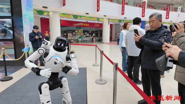 在淄博高新区“年货大集 高新好物”2026新春促消费活动现场,纽氏达特机器人惊艳亮相,化身集市“科技新宠”,与群众开展智能互动对话、趣味科普展示。孩子们围着机器人好奇地提问,大人则拍照分享体验感受。市民孙先生感叹:“没想到赶大集还能接触高科技,传统市集也能这么潮。”