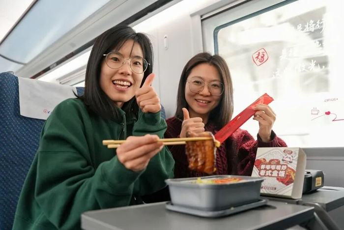 新品上新不止于此。今年,成都局集团公司在管内部分动车组列车上试行推出“莽嘟嘟”老式蛋炒饭热链套餐。热链套餐与冷链餐食同步供应,进一步满足旅客的多元化用餐需求。